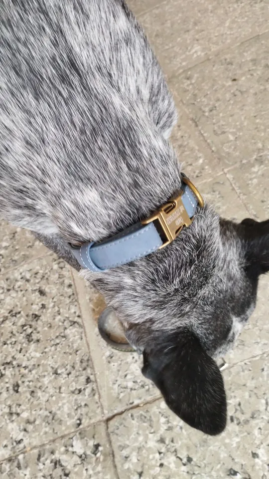 Crafted from supple, soft leather, this collar offers unmatched comfort while adding a touch of elegance to your dog's daily attire. Available in five vibrant colors, this collar allows you to choose the perfect hue to match your dog's personality and your style. The collar can be personalized with your dog's name and phone number, making it a unique and thoughtful accessory.